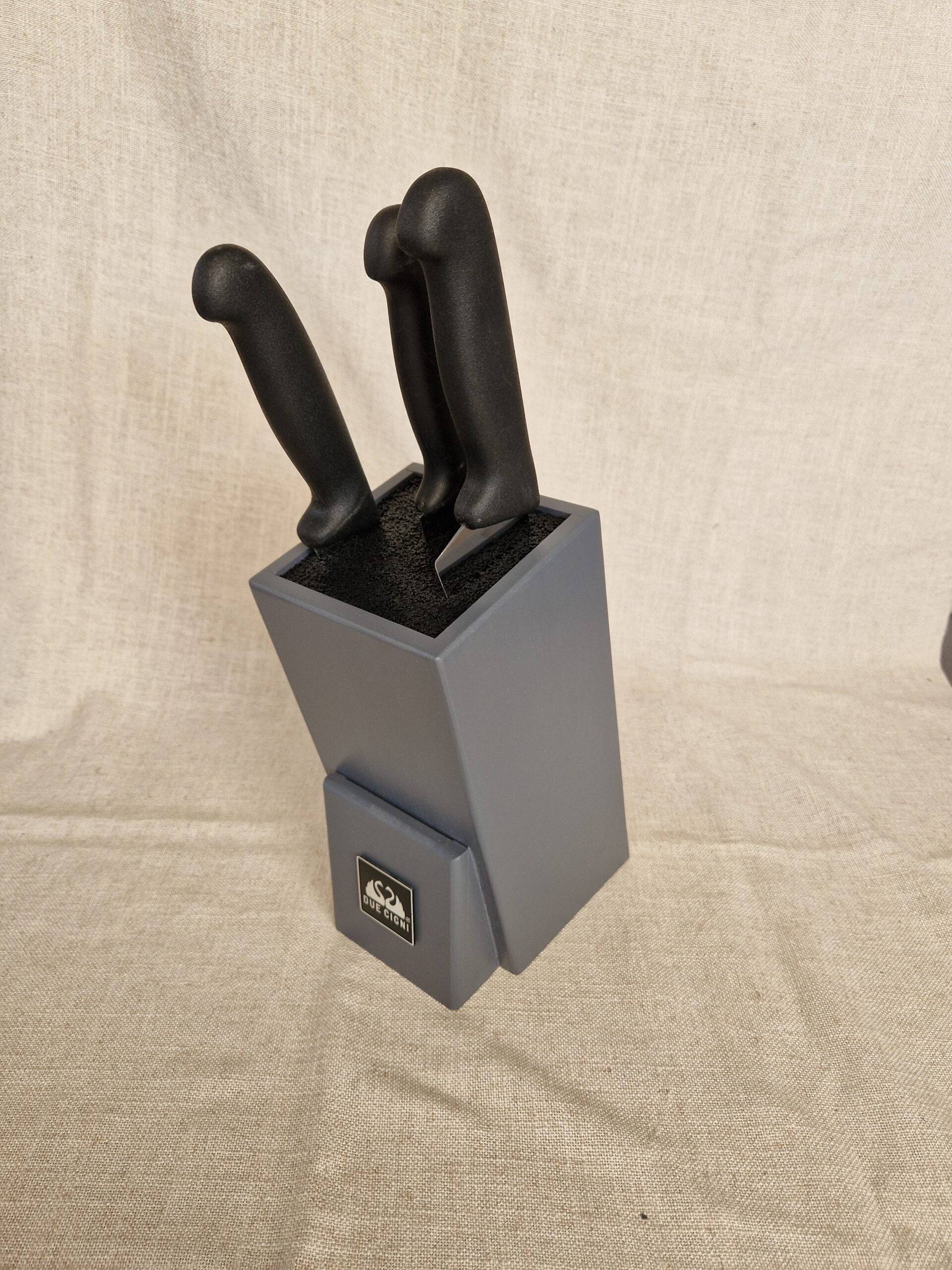 Ceppo universale Due Cigni in legno di bambù verniciato Grigio, con interno in materiale plastico innovativo che protegge le lame dei vostri coltelli.
