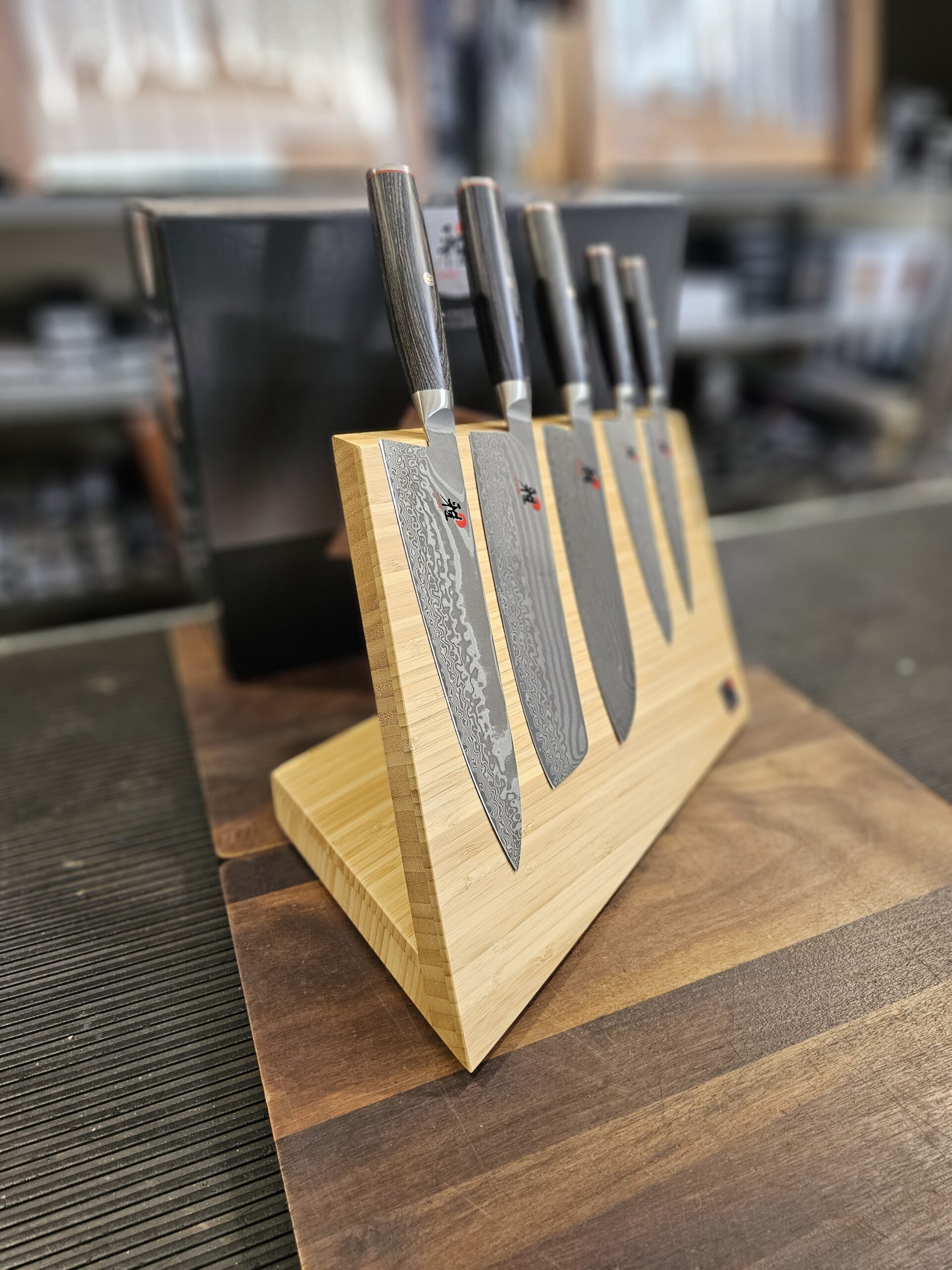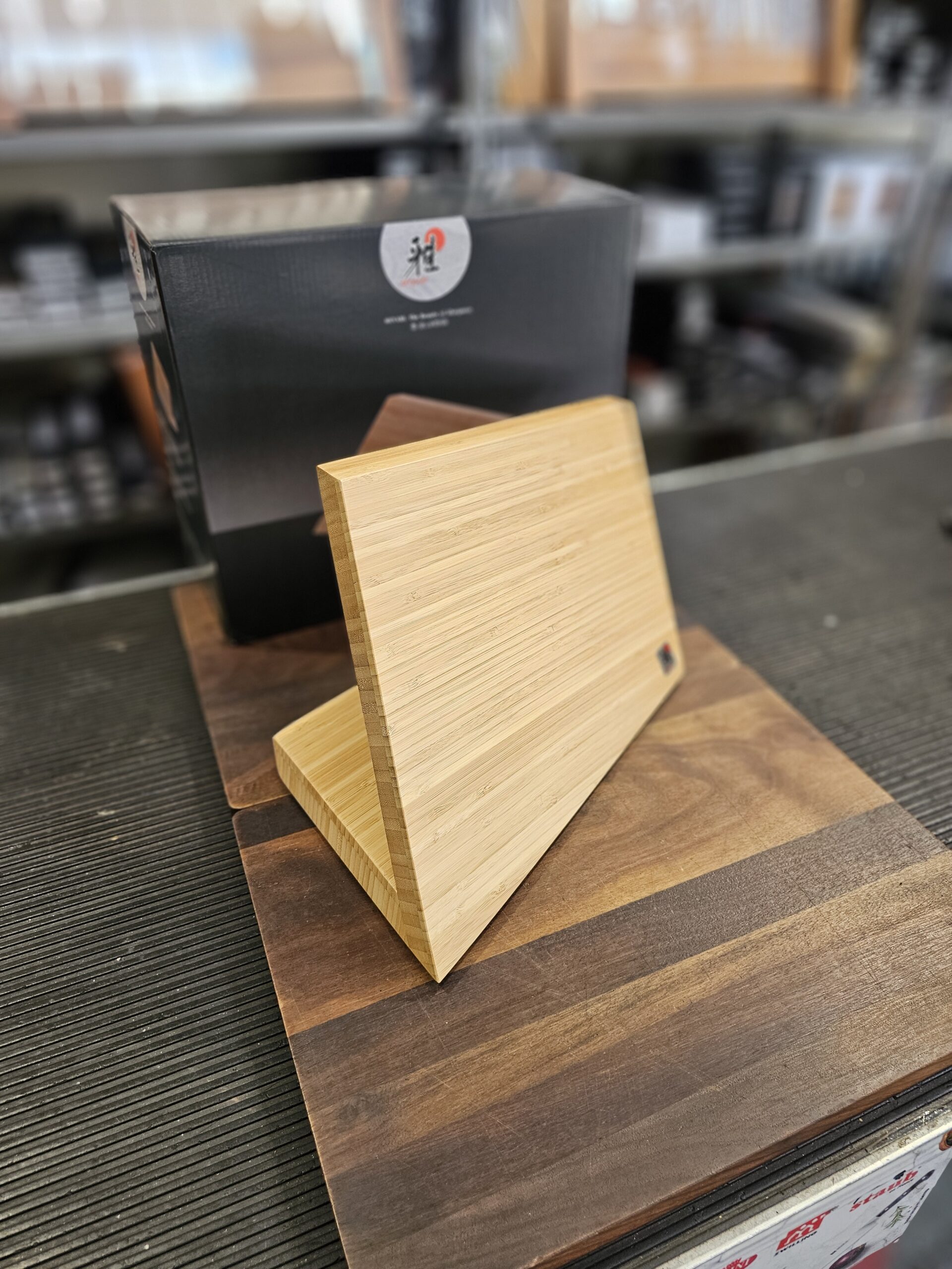 Con il ceppo in bambù di MIYABI avrete sempre i vostri coltelli a portata di mano. I coltelli di ogni serie vengono fissati su un ceppo di bambù di 30 x 24 x (20,14) cm, provvisto di magnete. Questo ceppo di alta qualità convince per la maggiore sicurezza e il maggiore comfort, uniti a un design di grande pregio. Le lame sono protette e i coltelli sono sempre pronti all’uso. Il ceppo magnetico in bambù della serie di accessori per coltelli vi aiuterà a tenere sempre ben organizzata la cucina: i coltelli saranno infatti sempre riposti in modo appropriato ed elegante.
