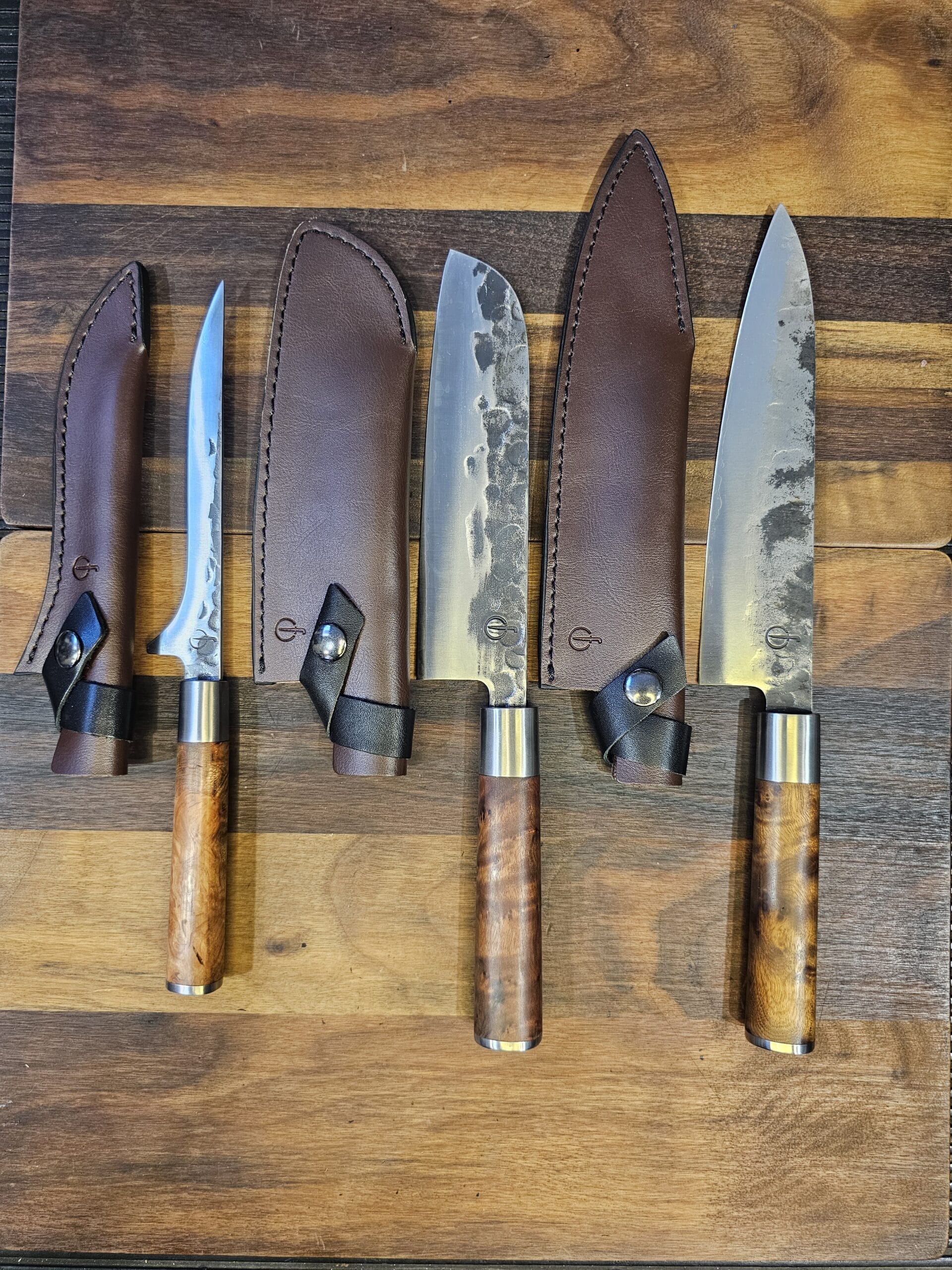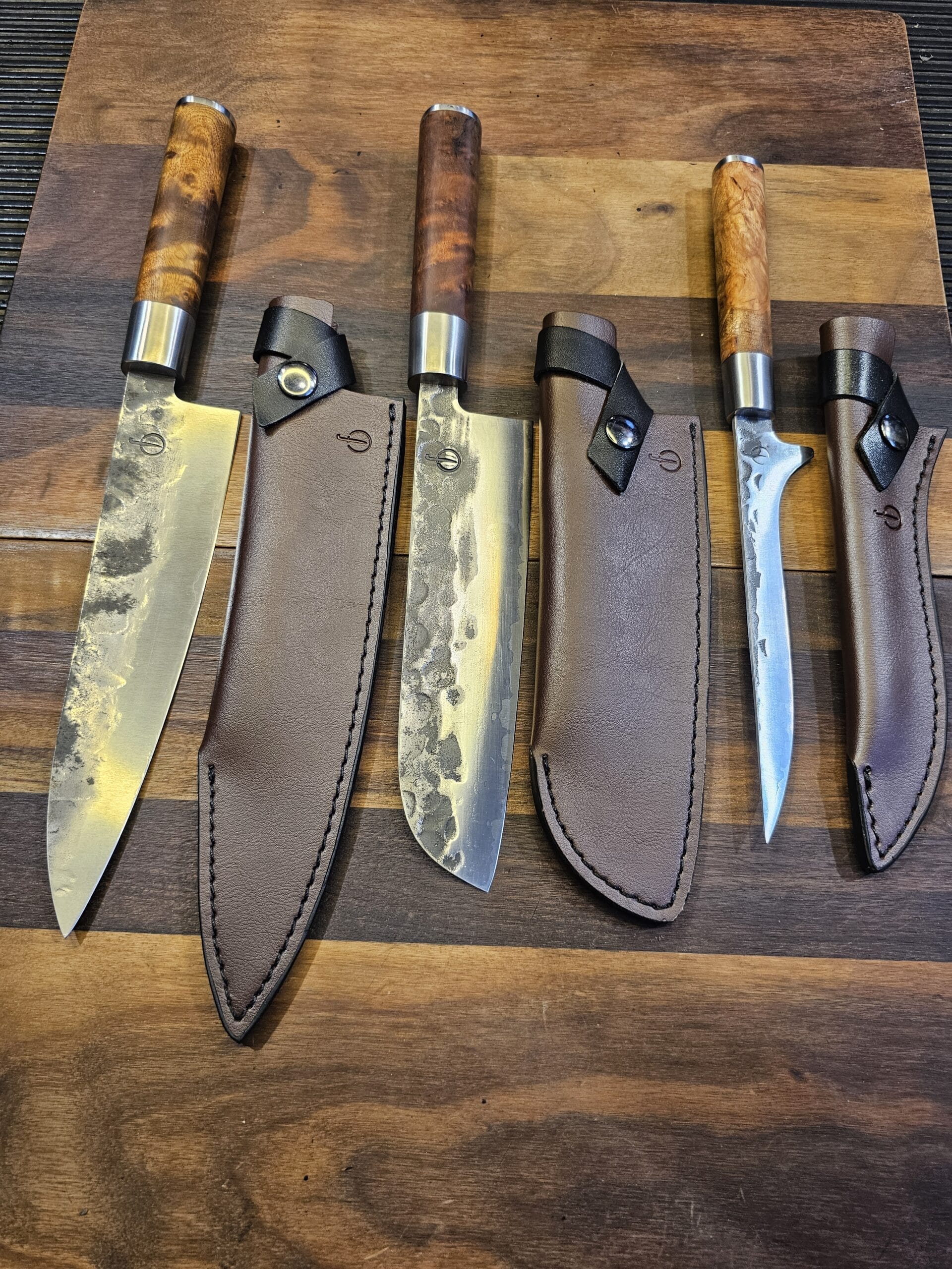 Set Forged Vg10 “Tris Cuoco1”- Manico in Radica – VG10Steel- Con Foderi