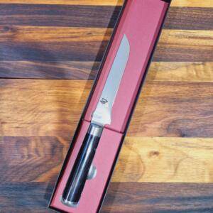 Questa serie di primissima qualità coniuga le eccellenti caratteristiche dei materiali della nota serie Shun Classic a un’ estetica d’insieme nuova e d’impatto. La lama presenta tre diverse superfici: dal dorso al centro, la superficie è martellata, una lavorazione-conosciuta in Giappone come Tsuchime.Quindi si passa a una damascatura opaca, tipicamente Shun. Fino ad arrivare, infine, al filo di precisione lucidato a specchio. Questa lama dalla lavorazione complessa è combinata con un impugnatura in noce marrone medio screziato. L’anima in acciaio particolarmente dura e resistente della lama assicura un’eccellente affilatura e prestazioni di taglio che durano nel tempo.